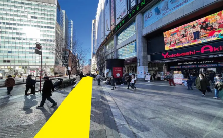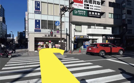 ヨドバシカメラを右手側に横断歩道まで直進します。